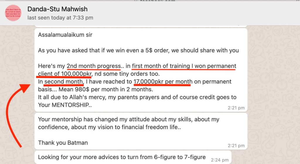 I am a pioneer of Pakistan’s Largest and most successful Online Freelancing Training, the Upwork Master Class (60 Days Challenge), Danday Wali Training (Copywriting), and Sales Boot Camp.